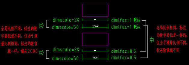 注:显示比例的意思是只影响标注的数字与图形本身的相对比例,不影响具体的数字的大小,缩放比例正相反,不影响标注的数字与图形本身的相对比例,只影响具体的数字的大小。