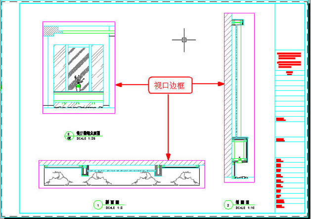 可以说,这是利用布局出图最实用的一个功能。上面的例子中已经包含了做大样图的内容,强调一下,大样图应利用原图通过视口边界直接生成,否则就体现不了视口的功能了,换句话说用布局出图就没什么意思了。