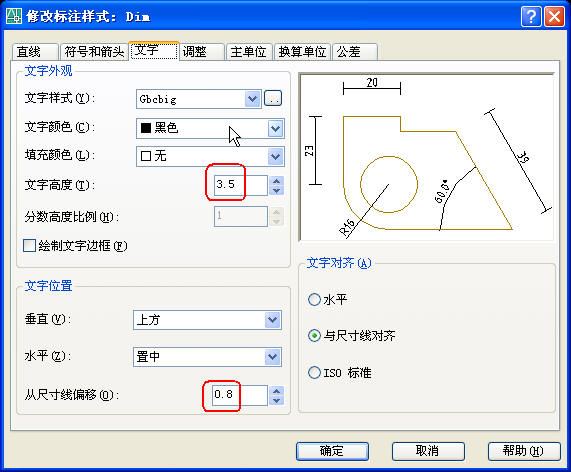 图框中的文字字高按实际大小,3.5 mm就按3.5 mm,2.5 mm就按2.5 mm。