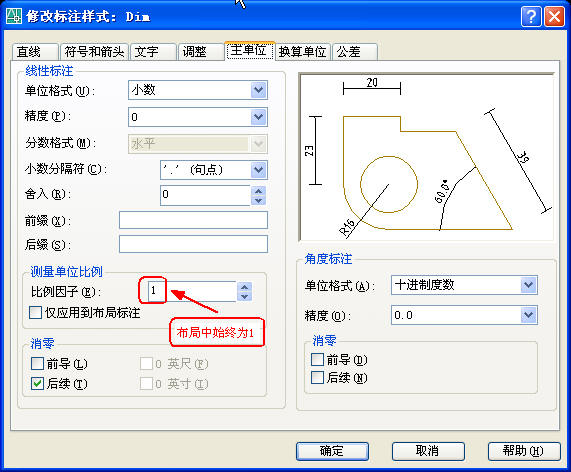 这里的关键是设全局比例Dimscale=0,在标注样式中表示为:“将标注缩放到布局”,即勾选此项。