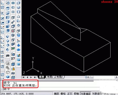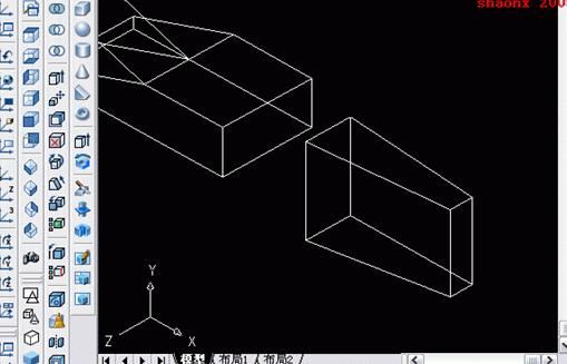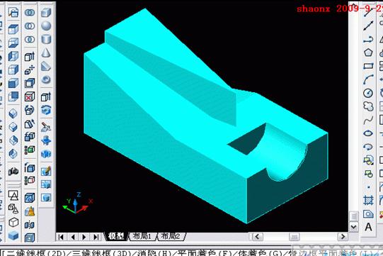 8、完成剖切后的图形如下图。这样,对这个实体的左半边完成了剖切,用同样的方法,再对右半部分做剖切。