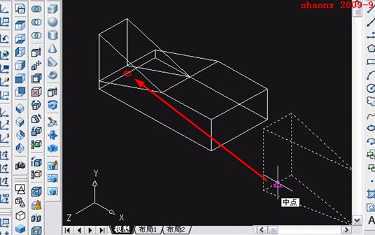 9、下面,对剖切完成的实体进行移动,如下图,注意移动的基点位置。