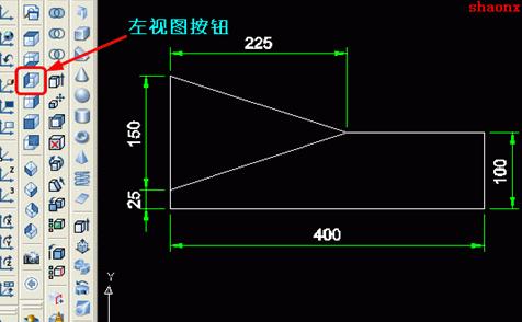 1、点击“左视图”按钮,进入到CAD的左视图界面。