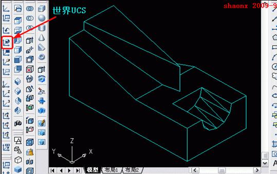 16、点击“世界UCS”按钮,使UCS坐标回到原来的状态。