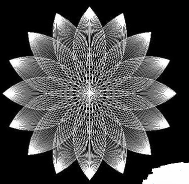 7、用ar(阵列)命令,然后选择“环形阵列”,选择对象为步骤5所示的花瓣,中心点为花瓣最上方点,项目总数为16,填充角度为360°,然后点确定,得到如图所示的荷花。
