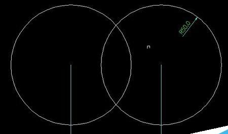 3、用直线连接两圆的二个交点,并用修剪命令修剪,如图所示。