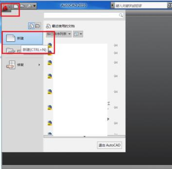 3、点击下图红框圈出的位置,新建一个CAD图形文件。