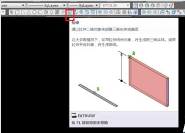 6、现在我们使用拉伸命令来进行一个三维制图的操作。命令图标如下图。