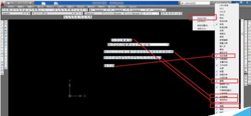 5、接下来我们在工具条空白的地方右击,一个一个的点击,调出画三维图形所需要用到的工具条,它们的图标和文字的对应关系如下图所示。鼠标点住它们并拖到工具栏适当的位置(只要自己知道在哪里就行)。