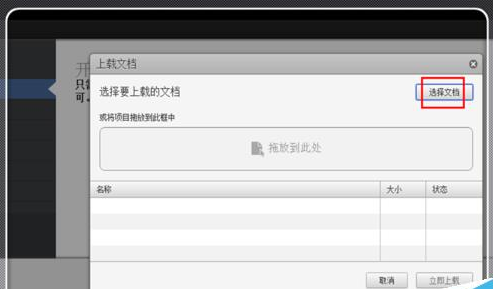 3、在“上载文档”中,点击右上角的“选择文档”,找到自己准备上传的文档。在个人计算机中找到上传的文档,点击“打开”进行上传操作。