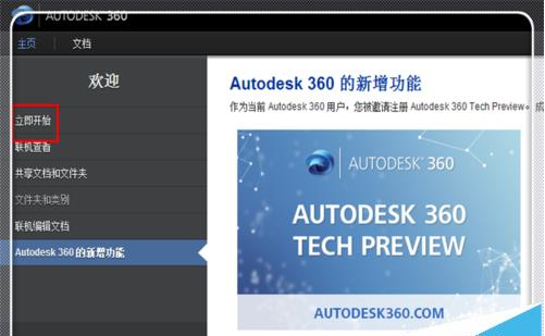 1、注册完毕账号,自动登录了自己的界面,在个人账户界面,点击左上角的“立即开始”进行自己的AutoCAD上传图纸操作。