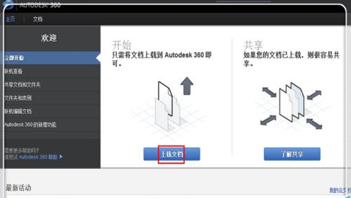 2、调出文档操作界面,点击“上载文档”上传自己打算进行远程操作、或者是进行网页版的CAD编辑操作的CAD图纸。
