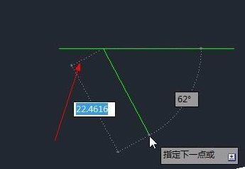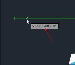 2、正常的情况下,选择再画直线,从已画线段的左端点出发,会有自动追踪的标记。如图,箭头所指的数字是左端点到鼠标的距离。