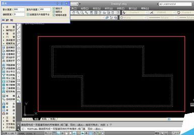 8、系统会将锁定后的墙线进行提示性的虚线处理,虚线的地方系统都会自动添加散水,用户按下键盘的空格键,即可输出散水。