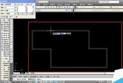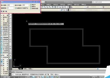 7、完成散水的设置后,将鼠标移动至绘图处,单击鼠标并拖动,将整个墙体都圈起来,散水工具会自动锁定墙线,圈起来后松开鼠标。