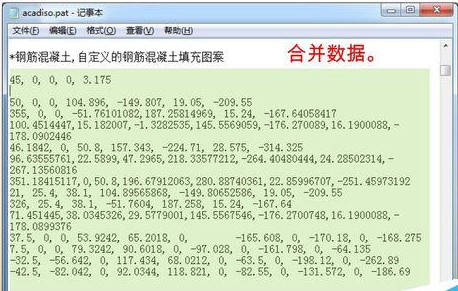 4、除“*AR-CONC,随机的点和石头图案”一行文字、合并数据,然后保存记事本(可暂不关闭记事本)。