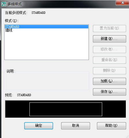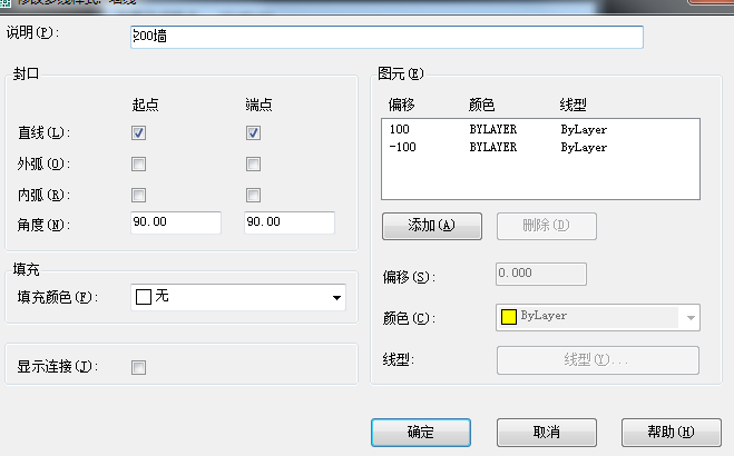 3选择新建,样式名字改为墙线,然后设置墙线尺寸,例如小编设置的200的墙就应该是+100,-100.还有起点端点要勾上,设置完成之后点击确定,把新建的多线样式置为当前。