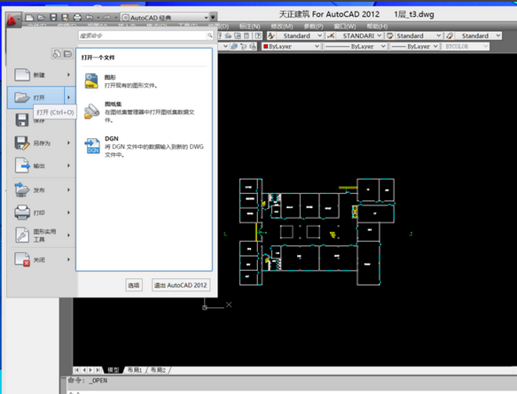 2.打开天正后,点击左上角的图标点击“打开”