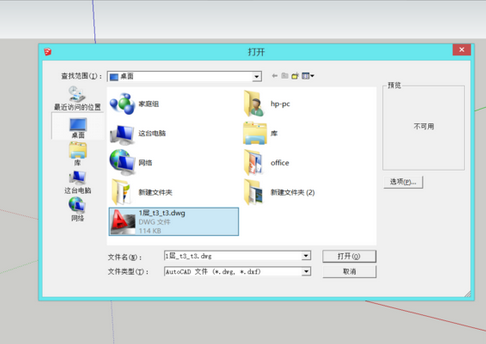 7.将文件类型改为AutoCAD,点击打开。就会出现三维的SU模型。