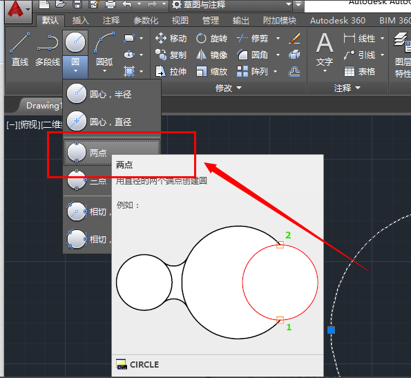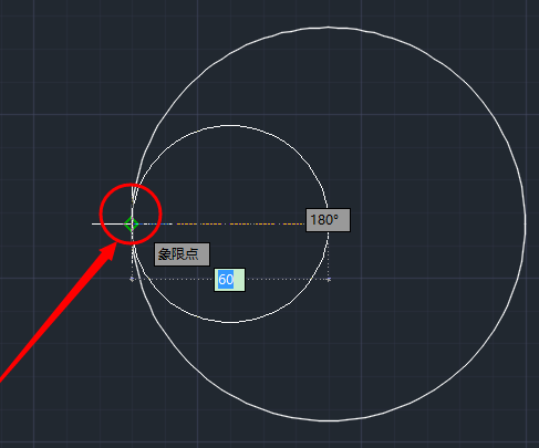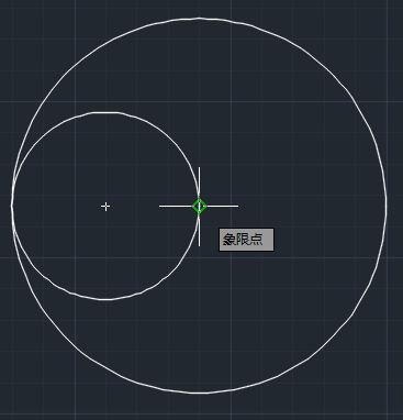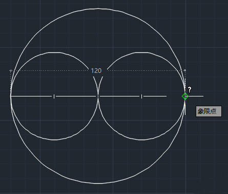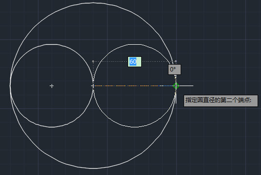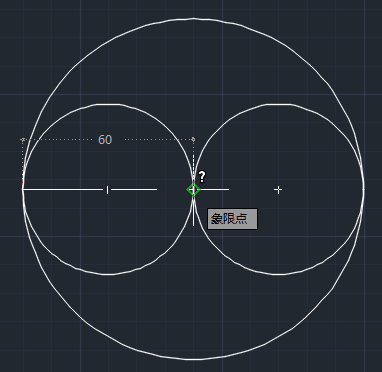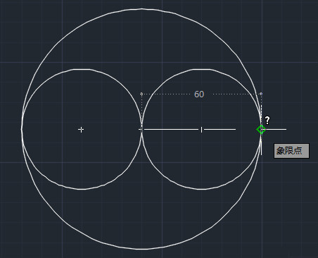 2.设置完成以后点击确定,来到绘图界面,在刚才的那个大圆里面我们需要画2个半径为30的小圆。利用对象捕捉和圆工具中的两点模式,先捕捉大圆圆心,然后鼠标移动捕捉到大圆左边的象限点,画出第一个小圆,重复此步骤画出另外一个圆。