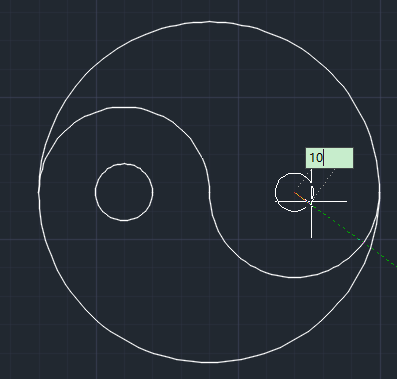 5.完成以后找到两个小圆的圆心,再画2个半径为10的小一点的圆。这样太极的轮廓已经出来了。