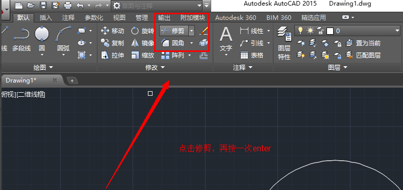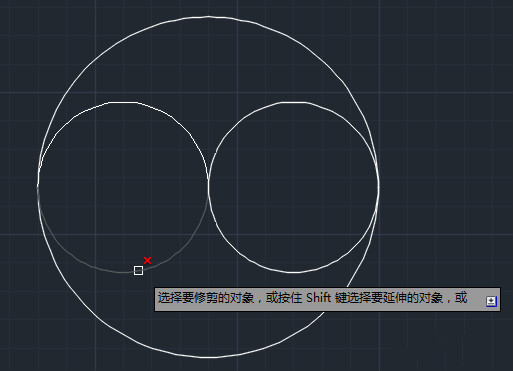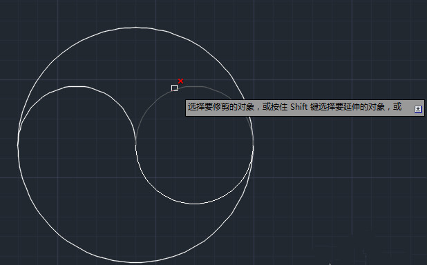4.接下来我们使用修剪工具,点击修剪工具,再按一下enter键或者单击一下鼠标右键,然后移动到小圆上如图进行修剪。