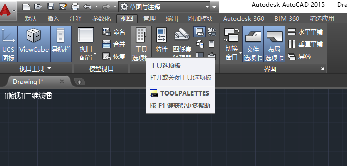 6.下面我们要给轮廓上色,在视图里面点击工具选项板,打开以后找到图案填充。点击一下图案中的实体填充,然后在要上色的地方单击一下。实体颜色显示的黑色,但并不是说一定就是黑色,而是依据背景色来的,因为我的背景色是白色,所以填充的也是白色。