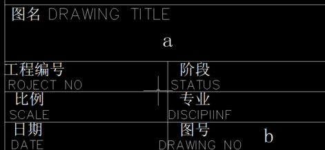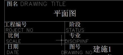 7.我在上述对话框中输入“属性”选项中的值“a”改成“平面图”;“b”改成建施1“。确定之后,看到的结果如下图。这个时候读者应该知道了吧,然后你可以把此块多个复制,双击其中的两个“值”,是可以输入自己想要的内容的,而不会改变前面块的内容,不像直接的块一样,改了其中一项,后面复制的块都会改变,这样我们就可以在图框中添加多个att命令,放到多个位置,在定义成块,修改其中的图名、图号什么的。