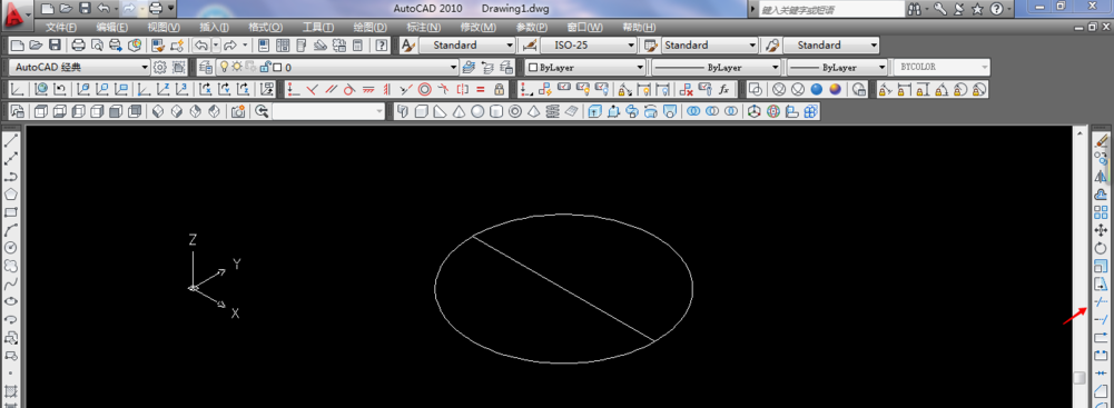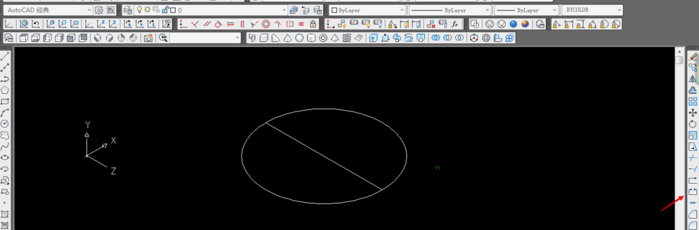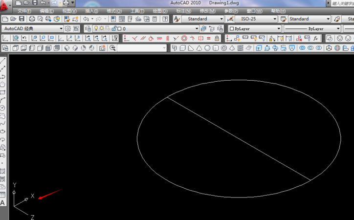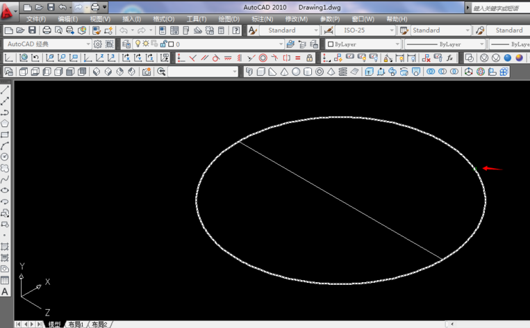 1.例如东南等轴测下画圆,中间画一直径,点击修剪。
