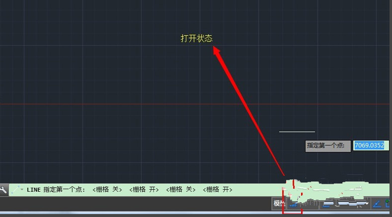 5、有些时候我们需要画正相交的图形,比如我需要两条直线的夹角是90°的,但是手动画不一定能画得很精确,这个时候我们需要开启“正交限制光标”,这样画出来的线段要么是平行于X轴的,要么是平行于Y轴的,肯定是直线,并且夹角也很精确。