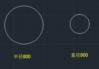 直径的画法是一样的,输入800,画出来的圆半径为400的。