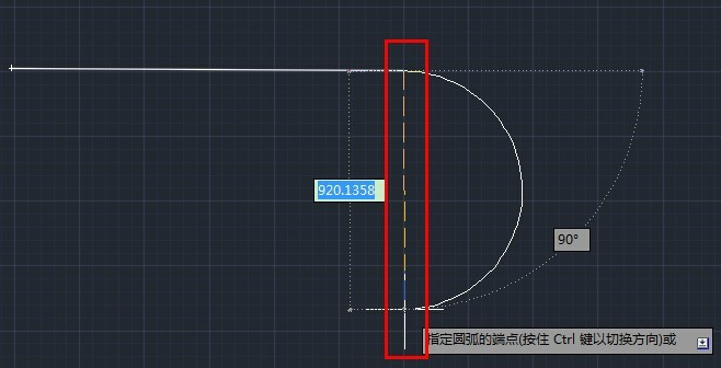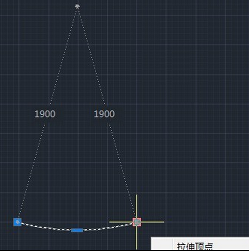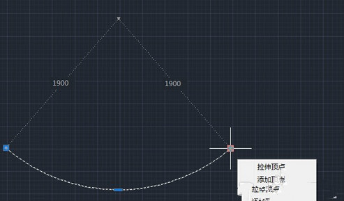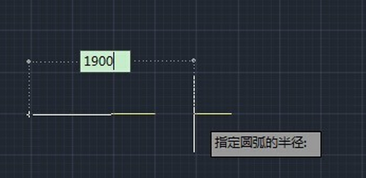 选中圆弧,光标放在端点上面,可以看见其半径显示是1900的。