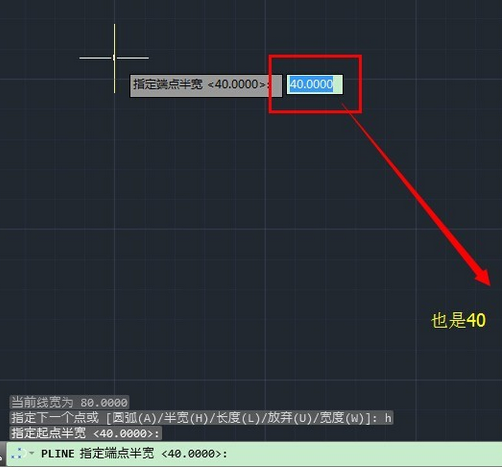 而且在设定了半宽40之后,再切换到宽度去绘制,会发现宽度这边自动变成了80.