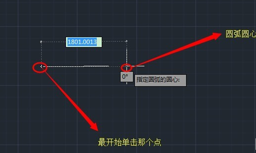 5.移动鼠标可以发现生成了圆弧,A点就是原来最开始单击的点,B点就是圆弧圆心,两点之间的距离就是圆弧的半径。
