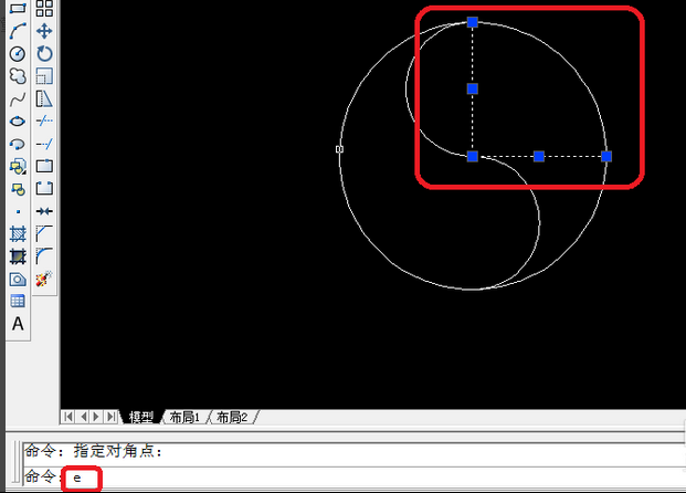 8、选择这两条线,在输入e字母在回车,进行删除。
