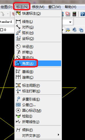 2、单击标注-角度。