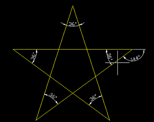 当我们用CAD软件来画完图了之后,还要进行一些微调,例如在五角星那里怎么进行角度标签。如下图有解析
