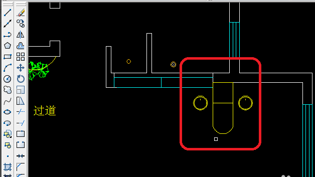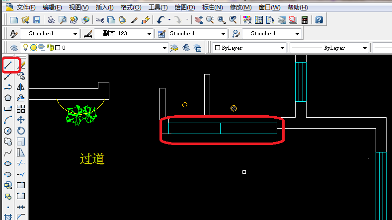 2、如下图是拆墙的,前几篇以说到了,用直工具来画如下图,在把颜色改为青。