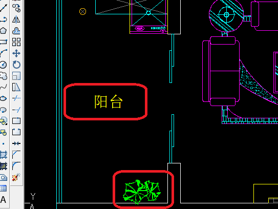 cad怎么画阳台,阳台用什么表现出来,应该要放哪里物质,什么应该放,什么不应该放,如下图有解说