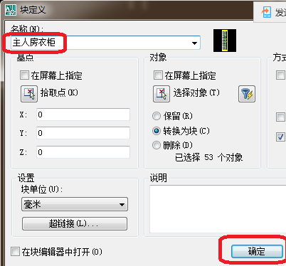 5、如下图在做实例,选择全部的衣柜,在单击创建块。