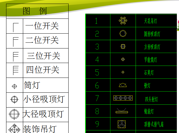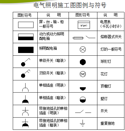2、如下图电气照明说明,这些都是一般经常的,一看到这些图标应该都懂的是什么了。