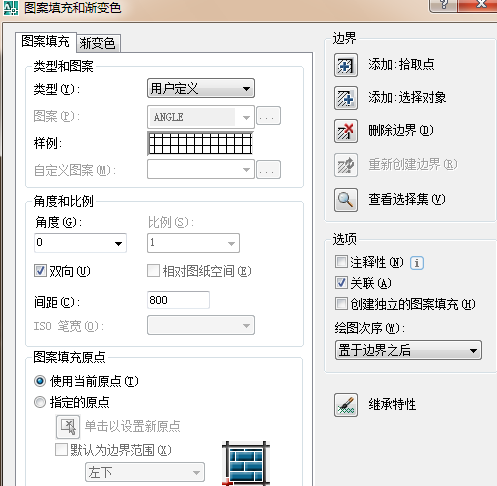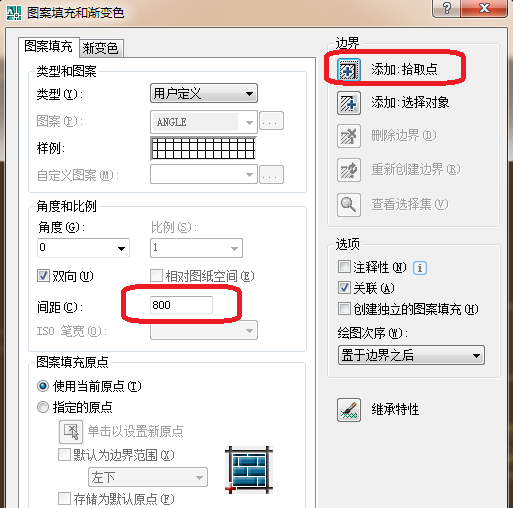 2、如下图输入快捷h空格键就出现如下图,单击类型为用户定义。在选择双向为800,这里的800意思就是800*800的地砖。单击添加:拾取点。
