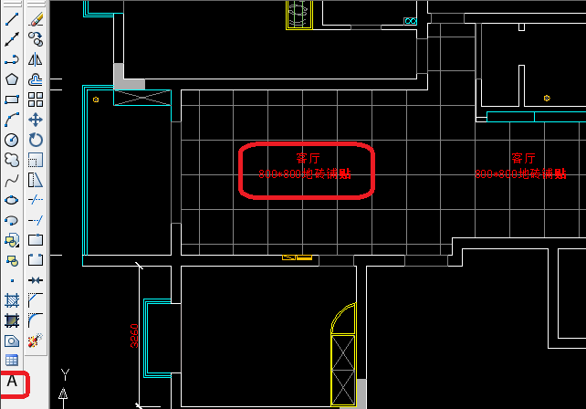 6、在用字标注,这是800*800地砖。这就完成了cad地砖布置图