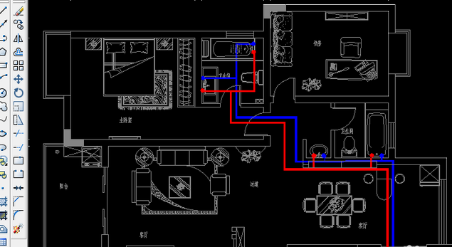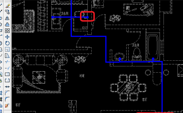 6、在画完冷水管。