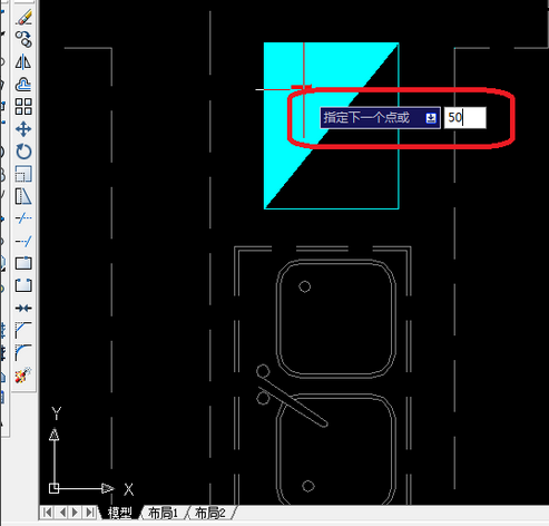 4、如下图在输入”50"在空格、在空格。这里50的意思50毫米大。