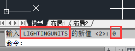 2.这时在命令栏里输入LIGHTINGUNITS——空格——0——空格