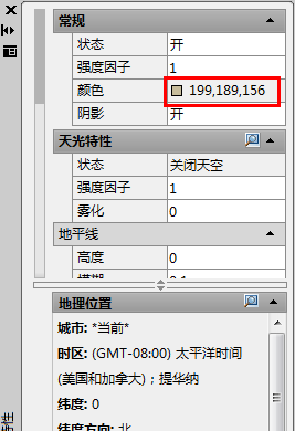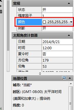 1.CAD默认的渲染——光源——阳光特性,如下图