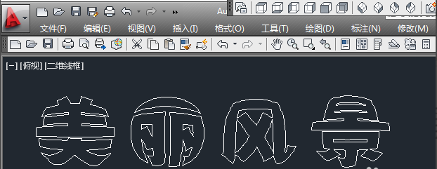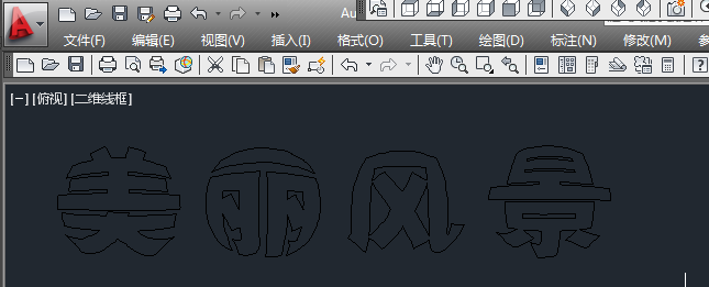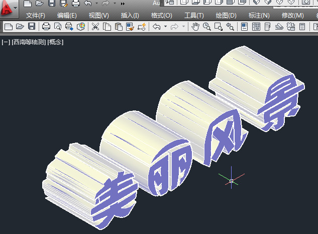 11.EXT——空格——选要拉伸的对象(美丽风景)——空格——拉伸的高度(随意,鼠标点到那里就那里),如下图,字就变成图形了。