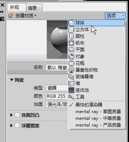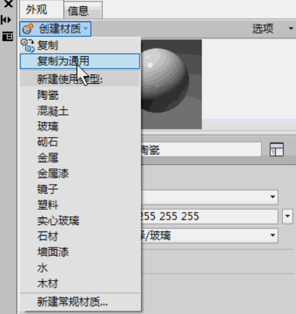 材质——陶瓷——选项——球体——将材质复制为通用