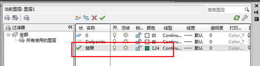 LA(图层)——点新建——鼠标左键双击图层名称改为翡翠——颜色改为绿色——再点置为当前